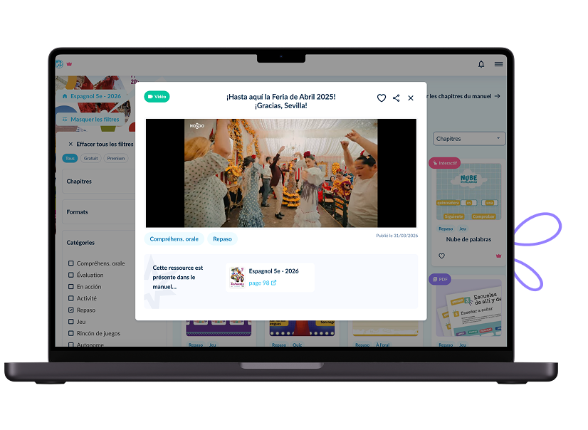 Une collection immersive et ludique, co-conçue par 138 professeurs. Plongez vos élèves au cœur des sociétés hispanophones et mettez-les en action grâce à une grande variété d'activités.