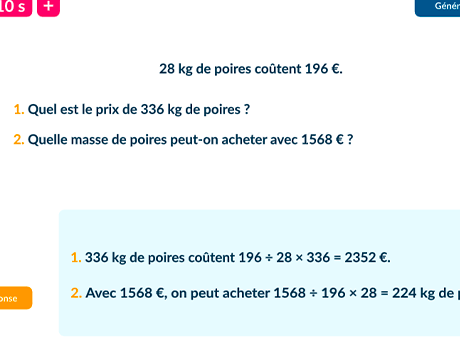 Résoudre des problèmes à l'aide d'un coefficient de proportionnalité