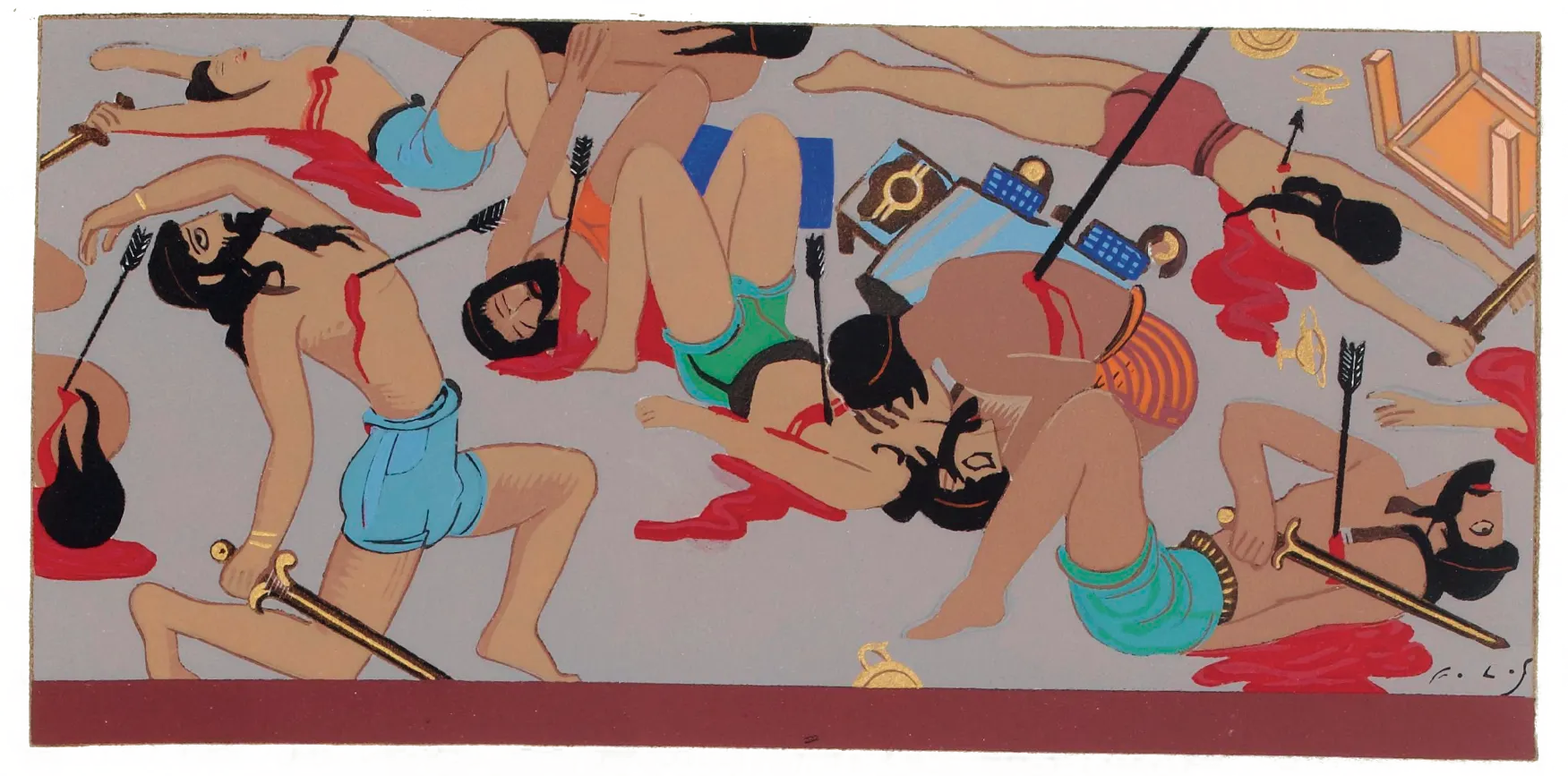 fracassées à terre et le sang recouvrit entièrement le sol.