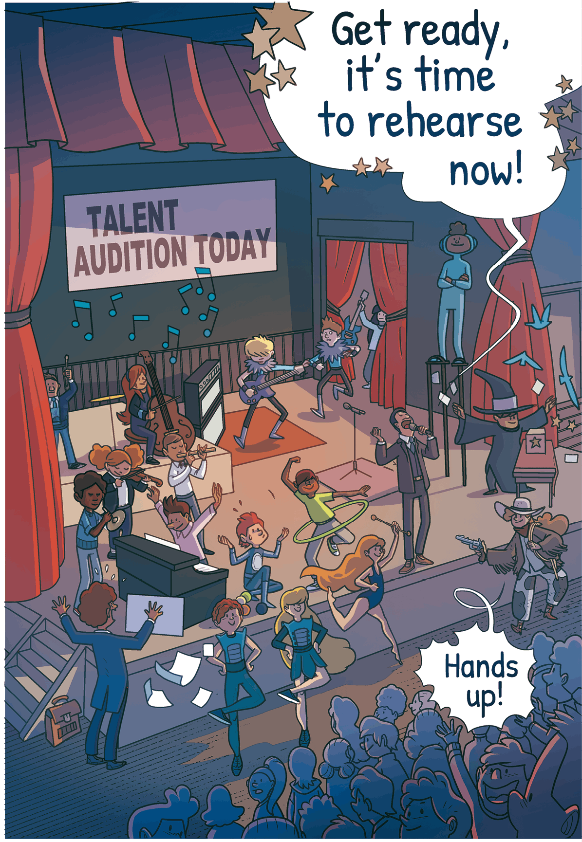 e. Archie is playing the cymbals: he isn't
