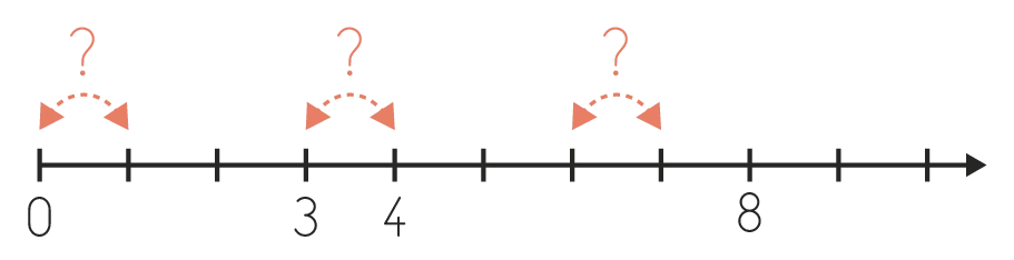 Réponse attendue : en comptant de 0 à la graduation 3/4/8 de 1 en 1, on arrive à 3/4/8.