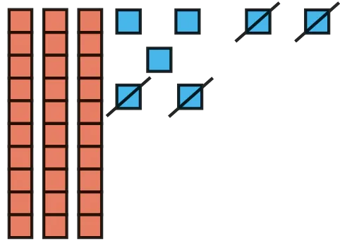 « Dans 37 moins 4, il y a 3 dizaines entières, que l'on va laisser de côté, car il n'y a pas de dizaine à soustraire. On regarde les unités isolées, 7 et 4. Comme on sait que 7 − 4 est égal à 3, et que l'on ne touche pas aux 3 dizaines, on sait aussi que 37 − 4 est égal à 33. »