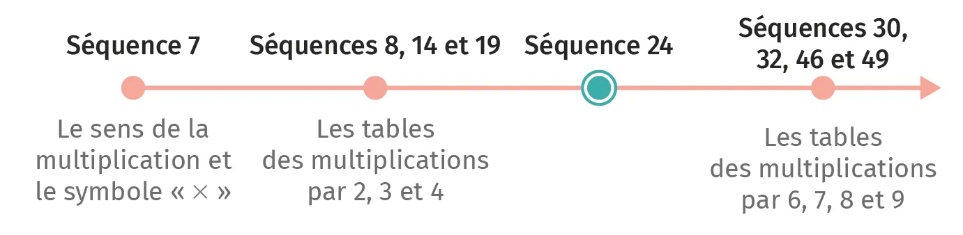 Verbaliser ainsi jusqu'à 5 × 10. Faire dire les résultats de la table dans les deux sens : « 5 × 2 égale 10 et 10 égale 5 × 2 et aussi 2 × 5. »
