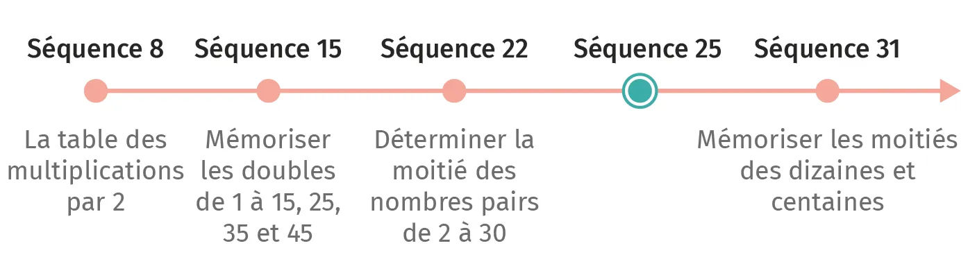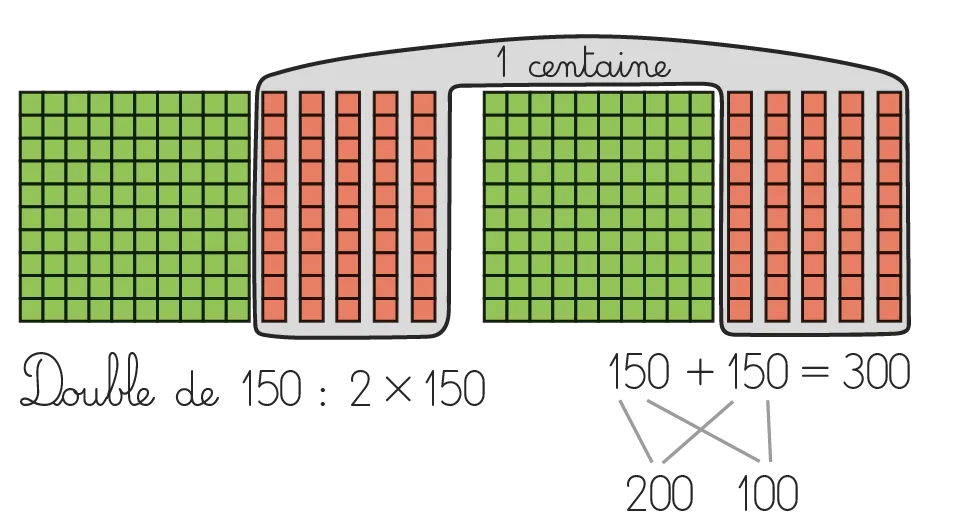 Le calcul des doubles de 50 et 500 implique un passage à l'unité de numération supérieure. Ainsi, il faut insister sur la démarche visant à doubler le nombre de dizaines ou de centaines. Pour le double de 50, on double cinq dizaines, ce qui équivaut à dix dizaines et donc une centaine. Pour le double de 500, il est possible de procéder ainsi et donc doubler 50 dizaines, ce qui équivaut à 100 dizaines et un millier. Les élèves peuvent également doubler les cinq centaines, ce qui équivaut à dix centaines et aussi à un millier.